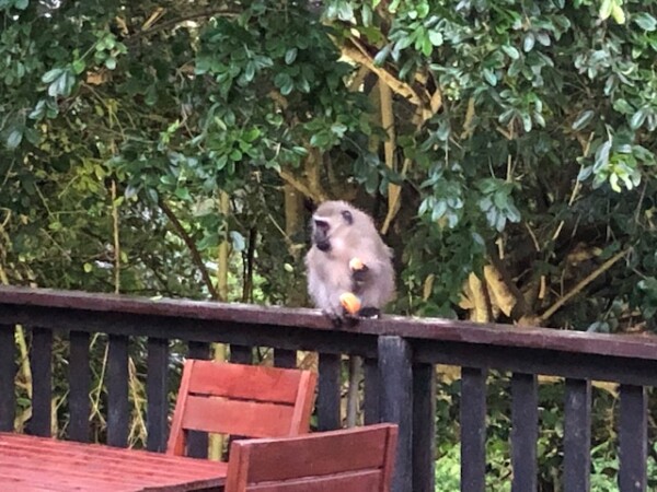 And last of all, the monkeys. I cannot leave a blog entitled, “Misbehaving” without mentioning them. From the first day we arrived in South Africa, we were warned about the monkeys. Not just in the bush but in the city too. “Lock your windows. Don’t leave anything out. They especially like sweet things.” Etc. Etc. Etc. I found it interesting that the rangers at Thula Thula have names for many of their animals, but not for the monkeys. For storytelling purposes, I have decide to call this little tyrant, Moxie.