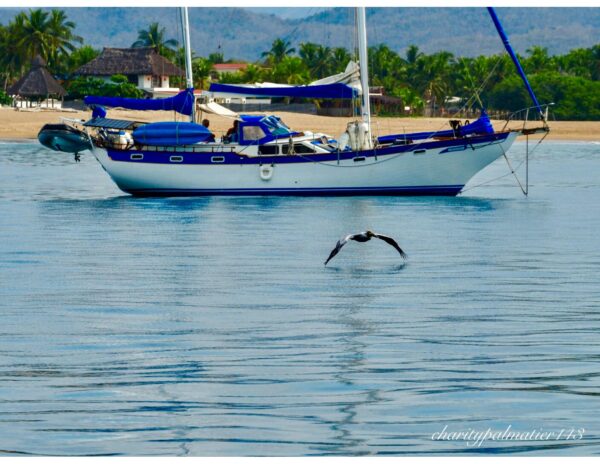 They decided they at least needed more antifreeze. Jay didn’t want to put the dinghy down and go up the river because it was low tide. He used What’s App to contact Cocina Tours who run pangas out of the docks up the river asking them if they had a boat that could help us. Since business was slow, Captain Monkey responded almost immediately, “Send me a photo of your boat.”
